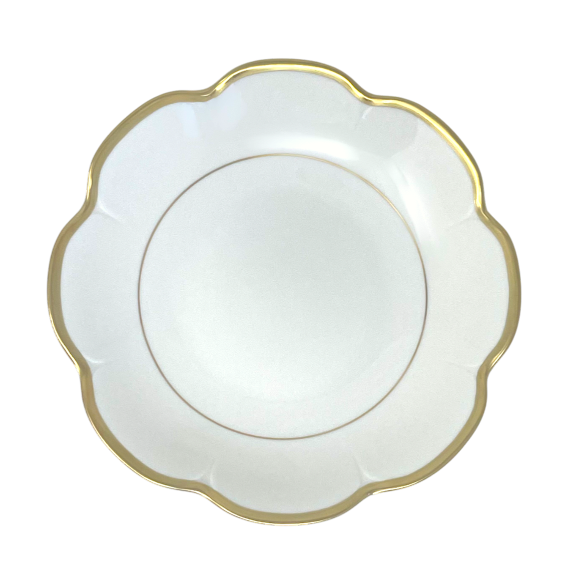 Élégante et fonctionnelle, cette assiette creuse de type calotte est idéale pour sublimer soupes, potages ou plats en sauce. Chaque pièce est délicatement rehaussée d’un filet d’or véritable, appliqué à la main selon les techniques traditionnelles de dorure.