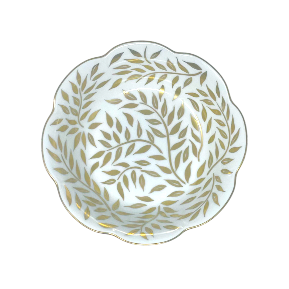 Élément polyvalent de la table, le bol s’intègre parfaitement à un service et apporte une touche de raffinement discret à tous les instants de dégustation. La présence d’or véritable, appliqué avec précision par nos artisans, confère à cette pièce un éclat précieux et intemporel.