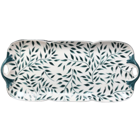 Ce plat à cake Olivier vert est pensé pour accueillir avec grâce vos cakes sucrés ou salés, pains gourmands ou présentations allongées. La finesse de la porcelaine est sublimée par un délicat filet, appliqué à la main, qui souligne avec élégance les courbes de la pièce.