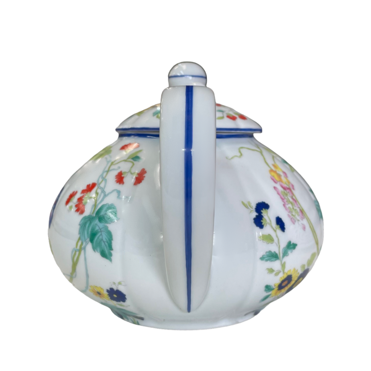 La finesse de la porcelaine est sublimée par un délicat filet, appliqué à la main, qui souligne avec élégance les courbes de la pièce.